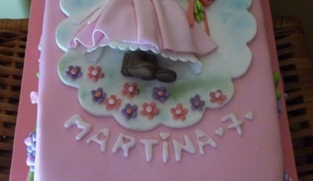 Two tier cake, for a quinceanera. Tulips was made out in fondant.the grass was made in buttercream