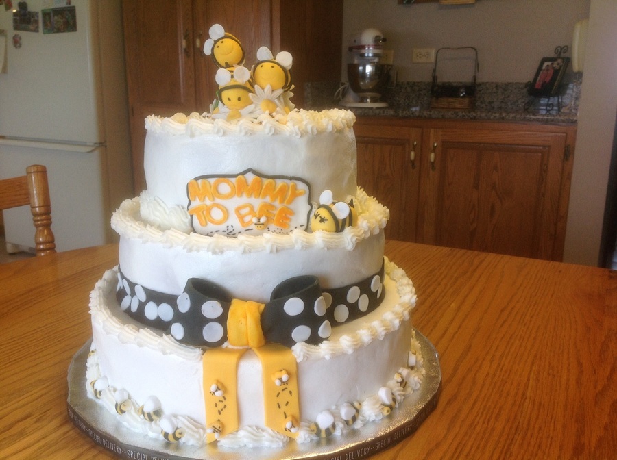 This is a cake I made for a Bumble Bee Themed Baby shower. Three tiers 12inch, 10 inch and 8inch. All cakes are covered in homemade Buttercream. Every thing on cake is Editable and homemade out of fondant. Thanks for looking.
