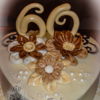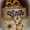 Frosted with buttercream, accents in fondant, sugar pearls and crystal sugar.