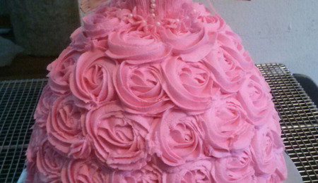 2 Tier Minnie Mouse Clubhouse themed Birthday Cake 8' Top Tier: Chocolate Cake 10' Bottom Tier: Yellow Cake in buttercream and decorated with fondant accents.