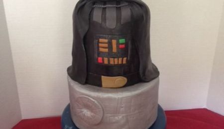 Three Tiered Darth Vader Cake 10 8 And Double Barrel 6 Tiers Are Covered In Marshmallow Fondant The Head Is Sculpted Rice Krispy