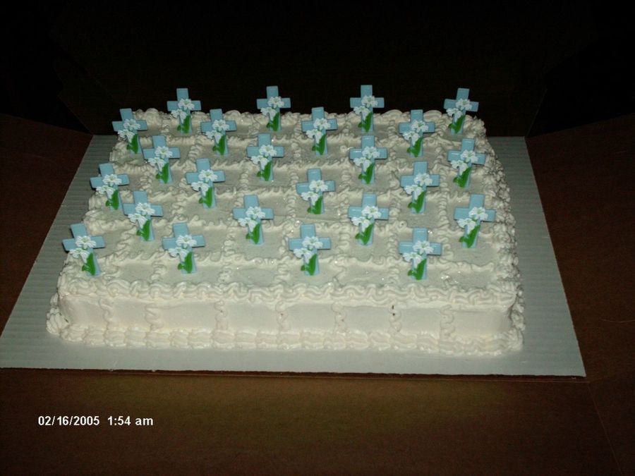 Very pretty cake. Your borders are beautiful as are the crosses with the Easter lillies.