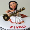 The cake design was customised to capture Piyali’s passion for classical music, Madhubani work and Silver jewelry. As mentioned by her friends, Piyali is a great singer and a very good Sitar artist too, which I tried depicting in her figurine.