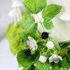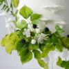 All the leaves and petals are made of wafer paper and the blackberries, mushrooms and moss are made of fondant.