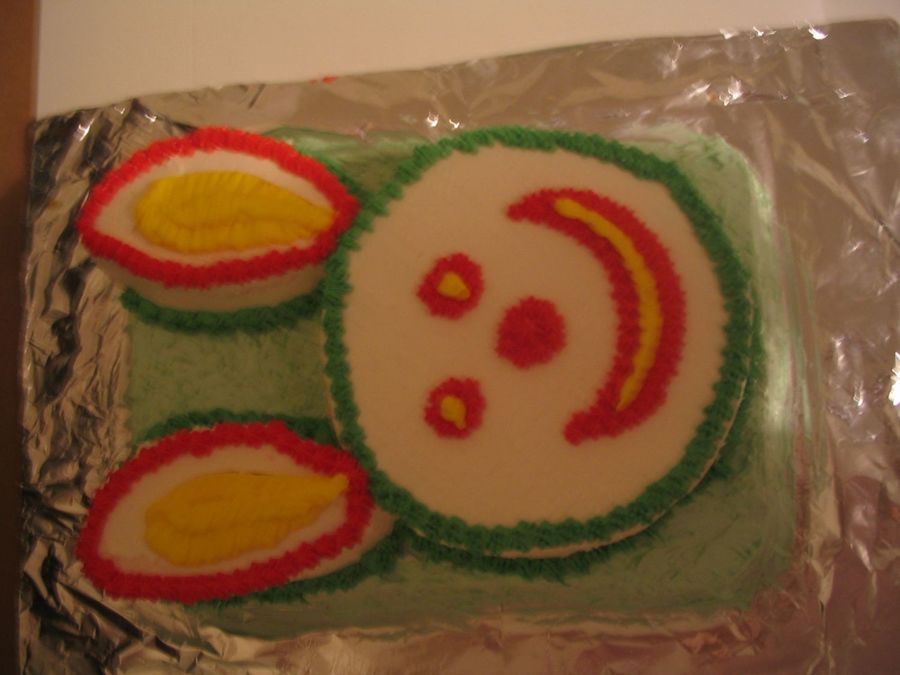 Easter bunny is Strawberry /vanilla cake with BC Icing.....The cake underneath him is A pina coloda Easter cake with whip cream/coconut icing!