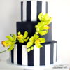 This cake was for a fresh and modern bridal cake. A branch of bright green orchids made from Nicholas Lodge gumpaste set against a monochromatic three tier cake.