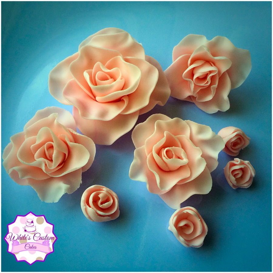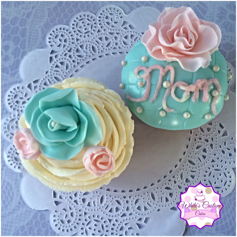 Fondant roses, piped swirls. Red velvet cake with cream cheese filling, strawberry cream cheese cupcakes. Thanks for looking!