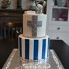My son's first holy communion cake with fondant bible and sugar beads and fondant rosary beads