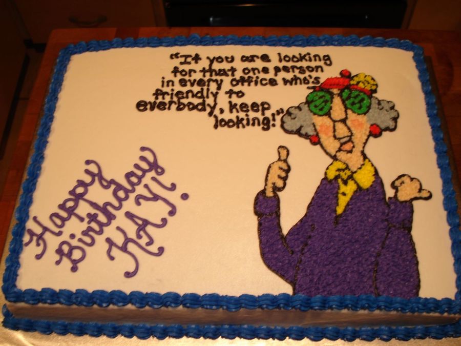 This was a cake for my mother-in-law, who runs our family business and is a Maxine lover. She got a kick out of it. I noticed that I left the y out of everybody, though...OOPS! I don't think anyone else noticed!