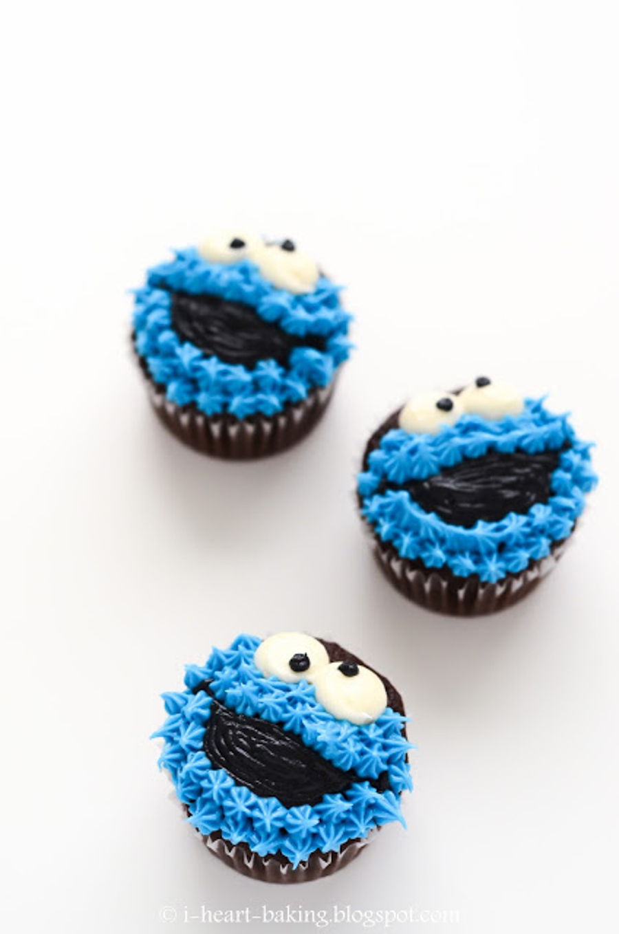 cookie monster cupcakes - chocolate cupcakes with cream cheese frosting