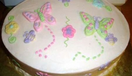 Fondant quills on a buttercream cake. Marbled strawberry and butter yellow cake.