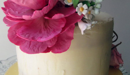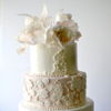 4 Tier Wedding Cake with romantic frills, beading and lace work with sugar flowers.