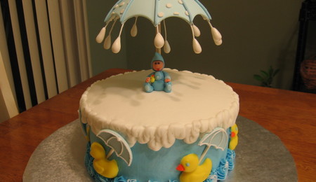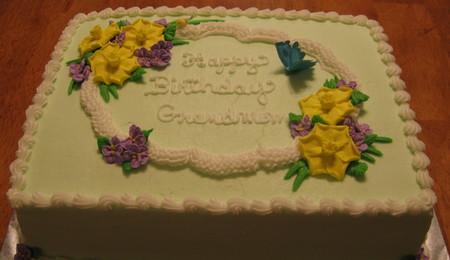 Fondant covered cake with wafer paper flowers and cake lace. Birds are done with a stamp.