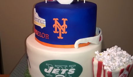 This sweet 16 cake is quilted fondant (Wilton teal) with gold dragees. I created the bow using the tutorial "How To Make a Bow: the Krazy Kool Cakes Way" because I wasn't happy with how my other bows had been turning out. I love their tutorials. Then I airbrushed the bow as well as the name and the rope border. I used a little bit of edible dust for added shine.
