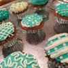 Mini carrot cake cupcakes decorated with cream cheese frosting. Made for a bridal shower.