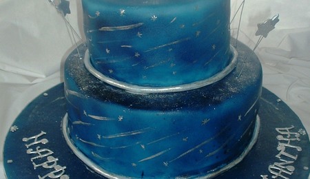 Cake done for a rustic chic wedding photo shoot. Bottom cake an organic chocolate cake filled with Earl Grey buttercream, top cake pink lemonade cake filled with organic raspberry buttercream. Birchwood was stenciled and all flowers handmade gumpaste flowers.