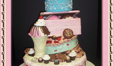 6" & 8" rounds covered in fondant with handpainted flowers using food coloring. Fondant 3D rununculus. Fondant leaf border made from a mold.