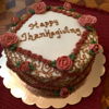 Three-layer carrot cake, frosted and decorated with cream cheese frosting.