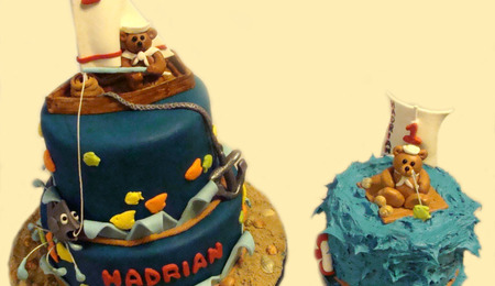 2 tiered baby girl 1st birthday cake, hot air balloon theme