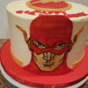 Flash superhero cake. Duff Goldmans vanilla cake with oreo IMBC filling and IMBC icing. I used a video from McGreevy's cakes to paint the fondant/gumpaste Flash head.
