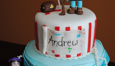 This is a 6 & 8 two tier covered in fondant with airbrushed details. The figure, Gekko, is made from fondant. Thanks for looking!