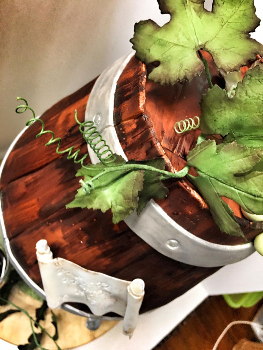 Time for a glass of wine... Fondant, hand painting, gum paste grapes leaves .