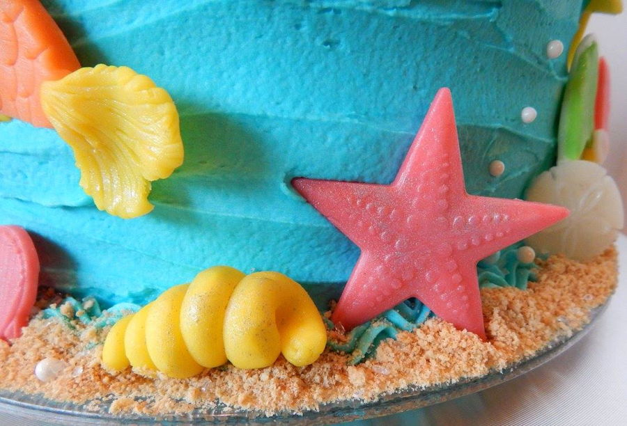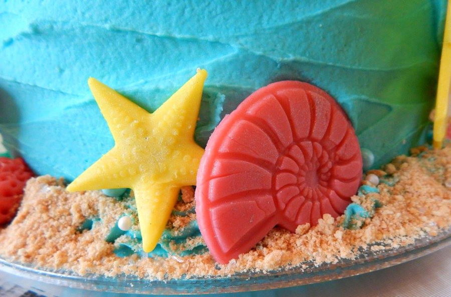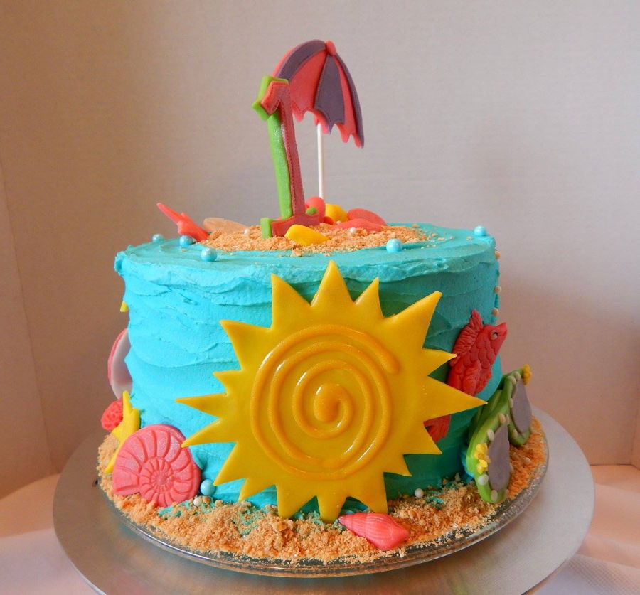 Beach Themed First Birthday Cake And Cupcakes