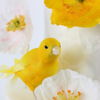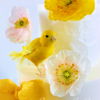 I have chosen poppies because their elegance and delicacy remind me of bridal gowns and the bright yellow is the color of spring and sunshine. The little canary is a symbol of joy and happiness.