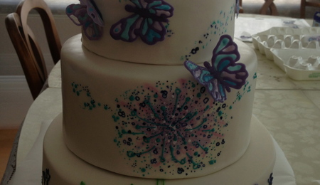 I got the order for this cake on an airplane on my way back from vacation. I was drawing cake inspirations from our trip to Italy. The client was sitting next to me and asked if I was free for her wedding... Probably the craziested client meeting. She wanted bold colors marsala and navy blue with blush and gold....jewels and flowers.
