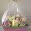 Mother's Day Rose Cupcakes in a hamper for the mother-in-law. Wish I'd taken some better photos but the other half was eager to get going (which is why there's a bit of buttercream on the cellophane. Ooops!) I also used edible glitter for that extra sparkle but can't really see on this. Overall she was very happy :)
