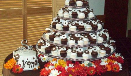 Nissan GTR inspired cake. Vanilla Bean cake with vanilla bean buttercream filling. Fondant finish. Fondant accents on cake and cupcakes. Gum paste accents. Cupcake toppers are all handmade and hand cut.