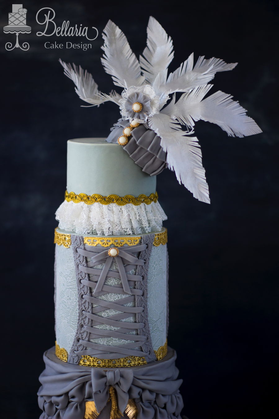 My Inspiration for this collaboration was Marie Antoinette. It has been my long time I wish to make a Victorian style cake. Looking at the photo of the designer I immediately knew what to do. The combination of the corset, lace, ruffles, pleats and drapes with a touch of gold are the characteristics of a Victorian style dress. Barbie time-travelled a few centuries back, but returned with grace and beauty. I’m very pleased with the result. Inspired by Magia 2000 Italia Designer Duo (Mario Paglimo & Gianni Grossi). Please visit our page to see all the wonderful pieces. https://www.facebook.com/Wedding-Cakes-Inspired-By-Fashion-A-Worldwide-Collaboration-1729085844050195/?pnref=story