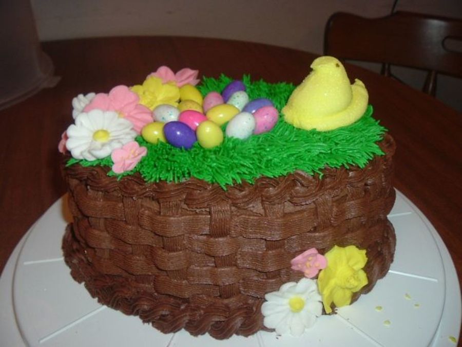 This is my 1st basketweave since class. Plus my 1st chocolate basketweave. And the 1st time I've done the grass. I think it turned out OK. I wanted to make a handle for it, but we're taking it to our cousin's for Easter & I didn't have nothing to carry it in with a handle on it.