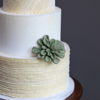 Buttercream ruffles and sugar succulents - the perfect pair! There's just something about the dainty ruffles with the deep green of succulents that make them meld so beautifully into a rustic yet chic design! Alternating tiers of smooth buttercream and directional ruffles and finished with 2 large sugar succulents.