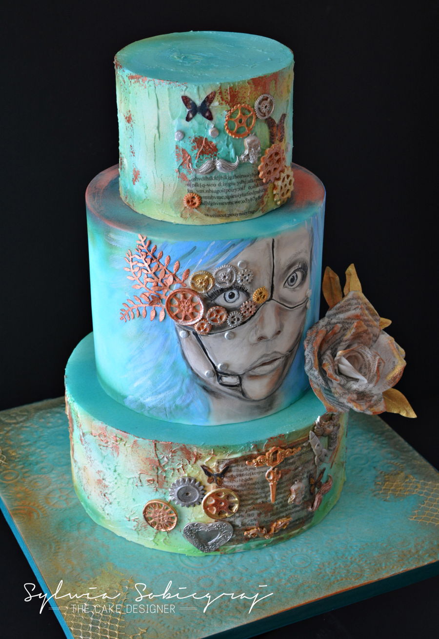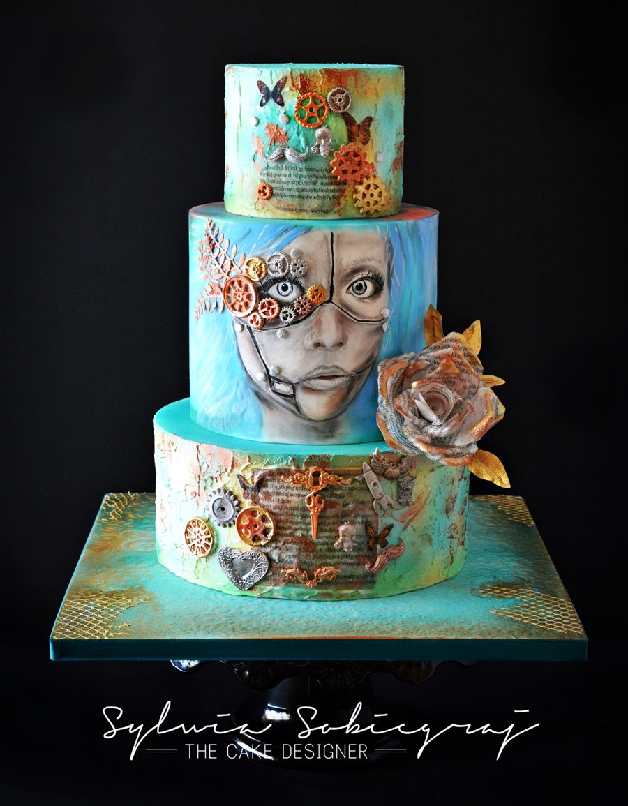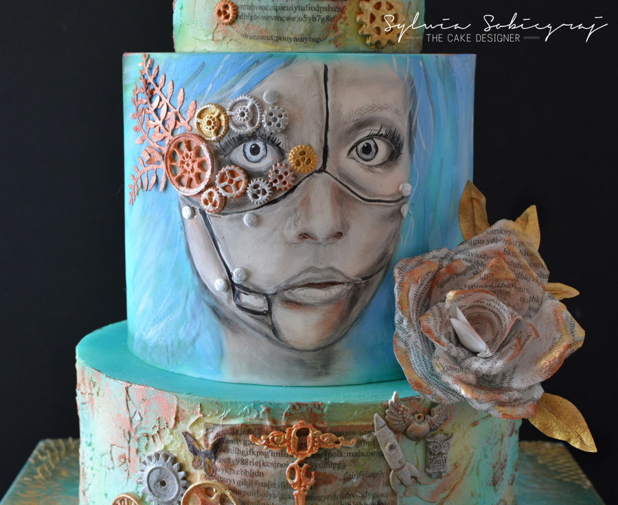 To celebrate the Steampunk International Day, Cake Artists from around the world gathered for a Steampunk Collaboration to be revealed on 14th June 2017. I am so delighted to be part of this amazing collaboration headed by Carla Rodriguez from Pepper Posh – Sugar Artist among with so manty talented artists. I called my piece Parthenia. To create my cake i used one of my favourite medium recently – cocoa butter. The face is hand painted with cocoa butter and edible dusts. The whole is complited with vintage rose made out of Saracino wafer paper. Please check out our page to see all the amazing creations https://www.facebook.com/PepperPosh.Cakes/ https://www.facebook.com/SylwiaSobiegrajTheCakeDesigner/