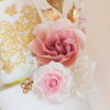 Back to work again after 4 weeks of holiday with my family. There are a lot wedding cakes scheduled for next couple weeks. I can’t wait to make some beautiful designs. I’ve made this 5 tiers white wedding cake with gold accents and old pink flowers last saturday. Hope you like it.