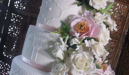 Loved making this traditional floral wedding cake for a farm relative where I live. Flavours were rich boozy fruit cake, chocolate cake, carrot cake. Used Saracino coverpaste for ruffles and cake coverings. Royal iced details. Used cake lace top tier with Royal iced embellishments. Thank you for looking https://www.facebook.com/callicreation