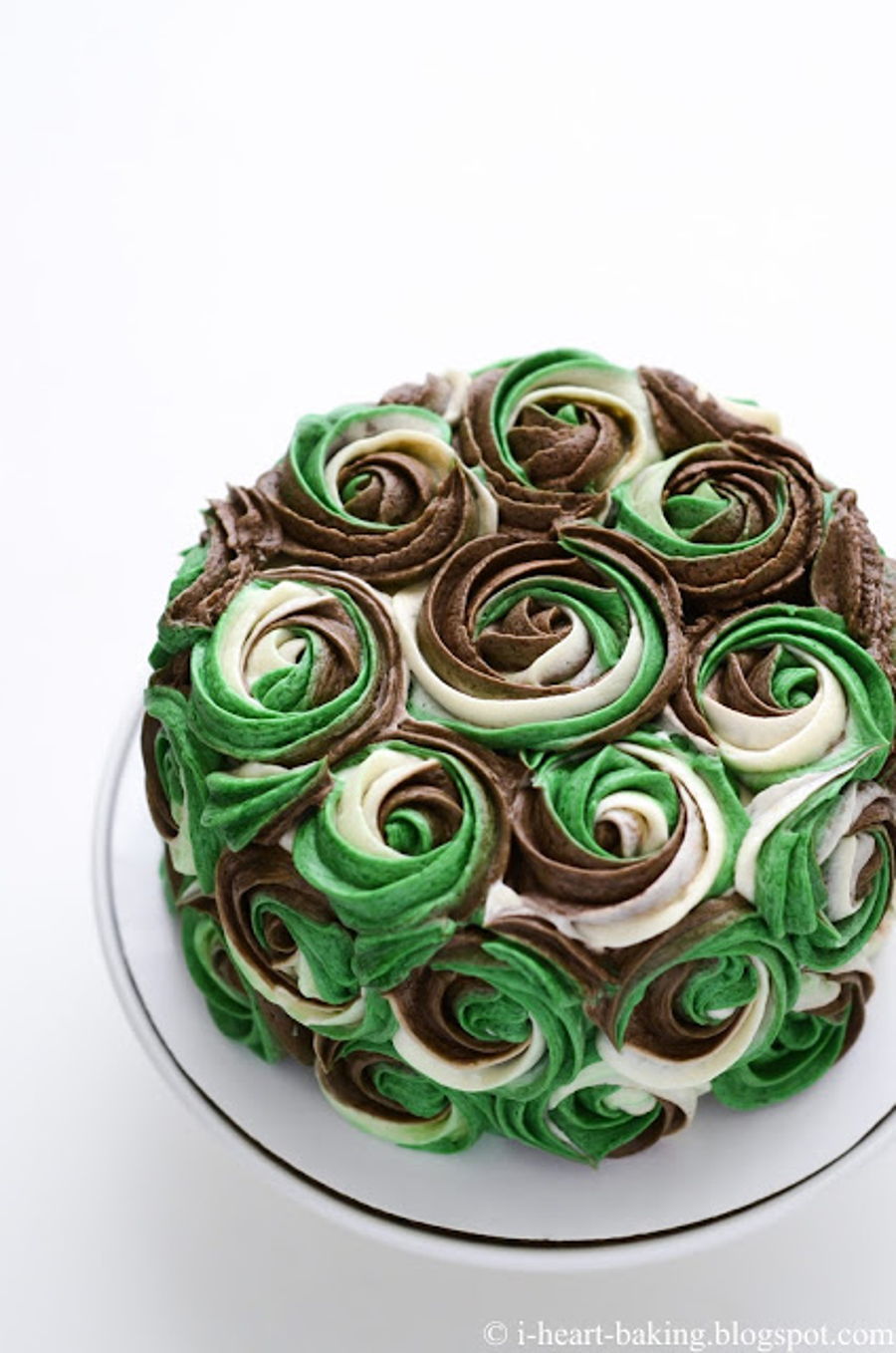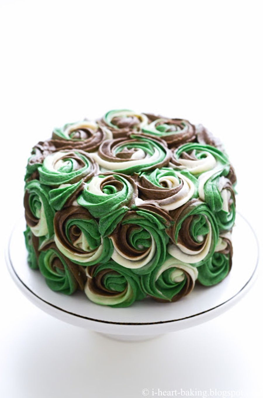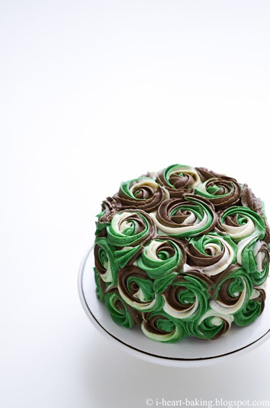 camouflage rose birthday cake - vanilla cake filled with lilikoi cream