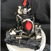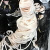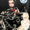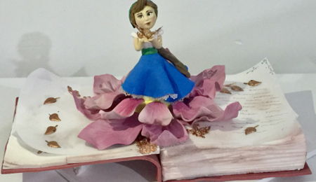 Figure made in satin ice fondant and satin ice gum paste for this collaboration. The piece is mounted with a structure of floral wires and also colored with rainbow dust powder and Americolor.