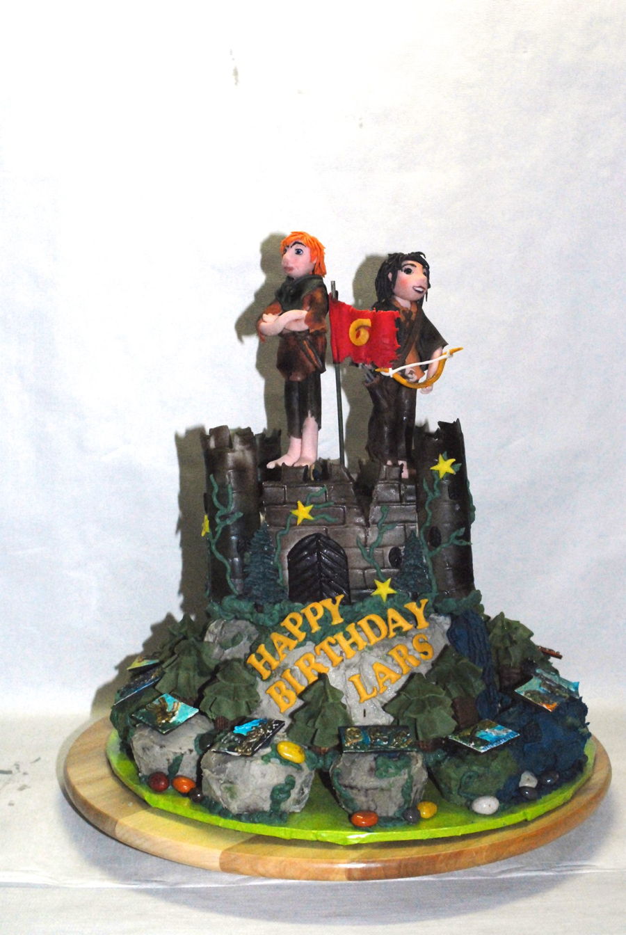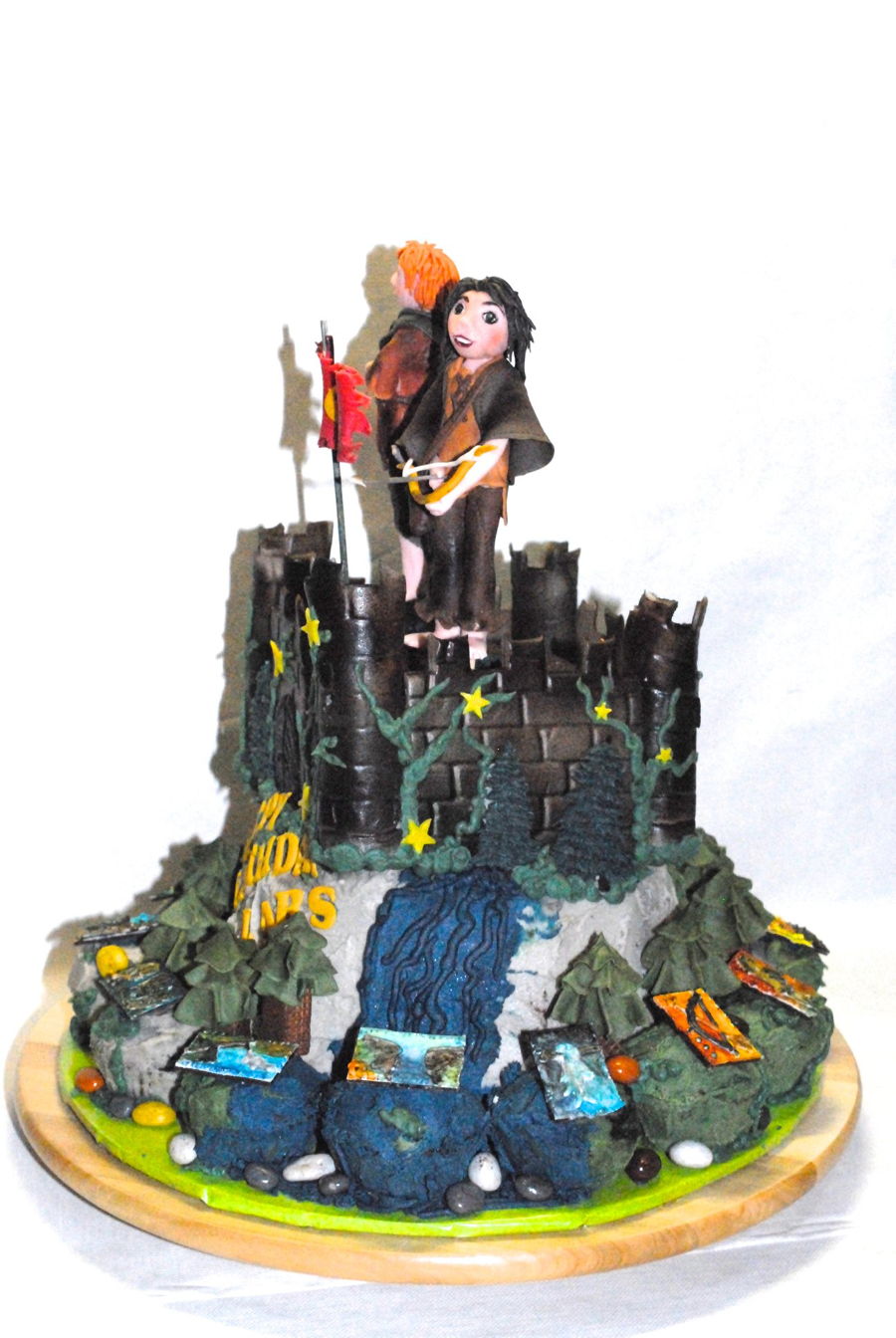 outside: castle and Kids fondant, Mountain buttercream Inside: vanilla cake with cream