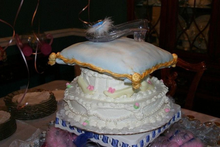 wedding cake with buttercream frosting and fondant pearls. Top layer is wedding cake with oreo filling and fondant.