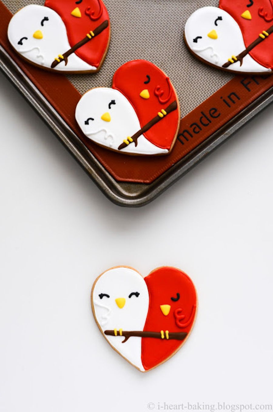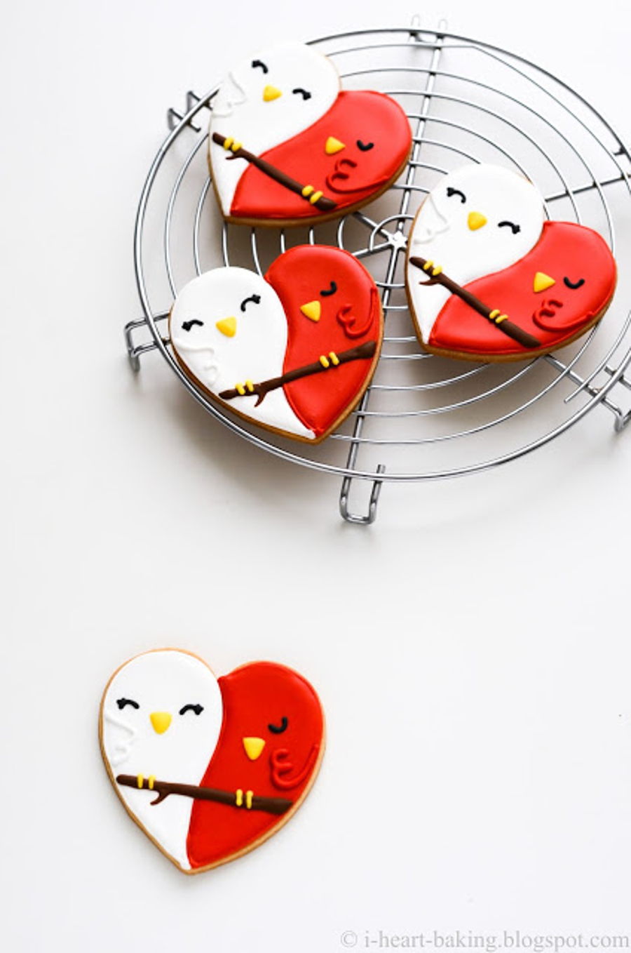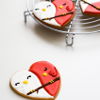 red and white lovebird cookies - butter sugar cookies decorated with royal icing