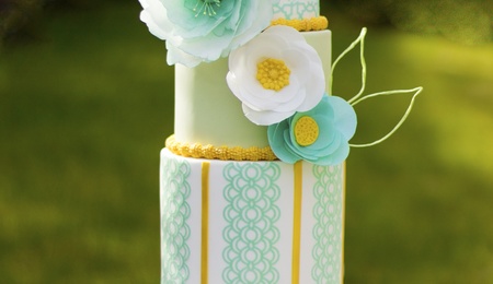 Romantic Great Gatsby themed wedding cake. The inspiration of the cake was the wedding dress. Love the glitz & glamour of this cake.