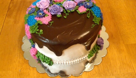Double layer chocolate cake filled, frosted and decorated with buttercream frosting. Made this for a co-worker's baby shower. TFL!