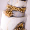 This geode cake was inspired by Pyrita and Quartz crystals, AKA Fools Gold. The cake features marbled fondant and the pyrite was created using the Diamonds in the Rough mold by Marvelous Molds. The quartz crystals are isomalt and were created by pouring clear isomalt into several crystal molds purchased on ebay and Amazon.