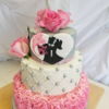 I haven't been caking for about 6 years because of my job. I recently switched jobs and now have a better schedule. A friend asked me to make her daughter's wedding cake and cheesecakes. Here is my result. WASC strawberry filled with buttercream. This was my first time doing all buttercream (no MMF). First for bottom tier rose icing and first time adding flowers to a cake myself. I love this cake. The cheesecakes were normal flavor and I added a layer of homemade whipped cream to the top which I colored. The heart silhouettes were all gumpaste and hand painted with sugar lace accents.