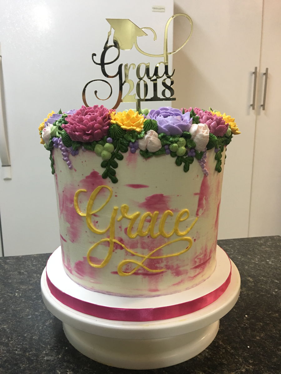 I love that you can now take any cake style, put in a pretty pick and it’s ready for any occasion! This cake is vanilla with smb. I loved making the flowers....