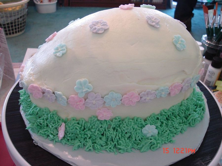 A cake made for a friend for Easter. Cream cheese frosting, royal icing flowers, the grass is cc frosting made with the grass tip.