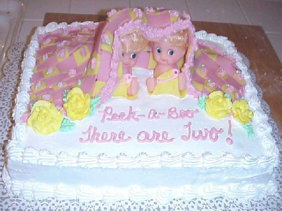Baby shower cake for twins. Buttercream frosting with fondant weaved blanket.