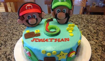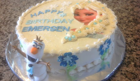 9 inch double layer cake with buttercream frosting and fondant decorations